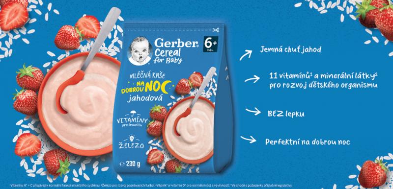 Gerber Cereal Mliečna KAŠA Dobrú noc Jahodová