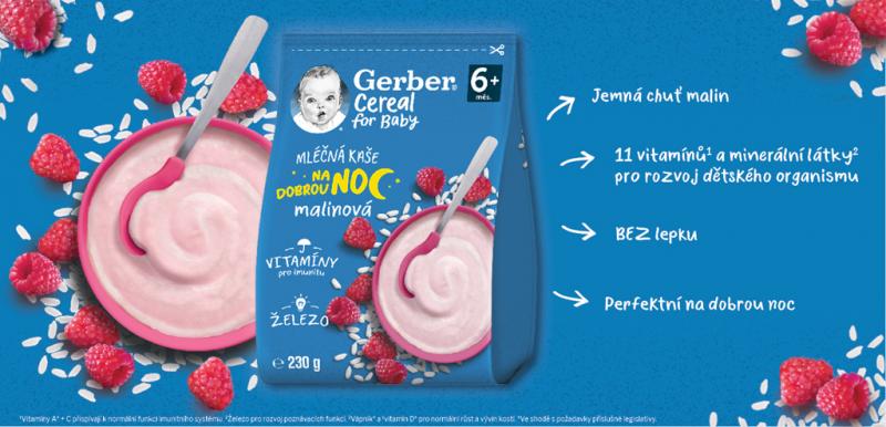 Gerber Cereal Mliečna KAŠA Dobrú noc Malinová