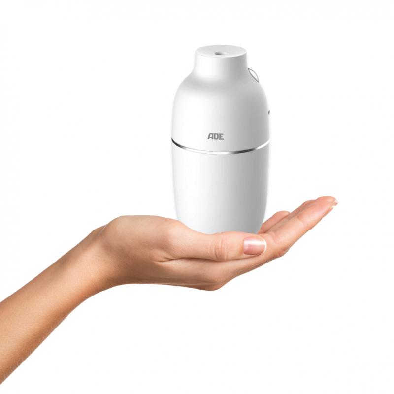 Štíhly zvlhčovač ADE menší ako pollitrová fľaša sa zmestí do kabelky alebo batohu.