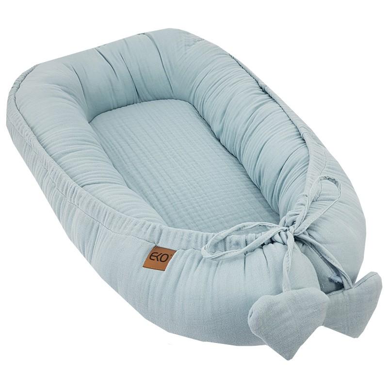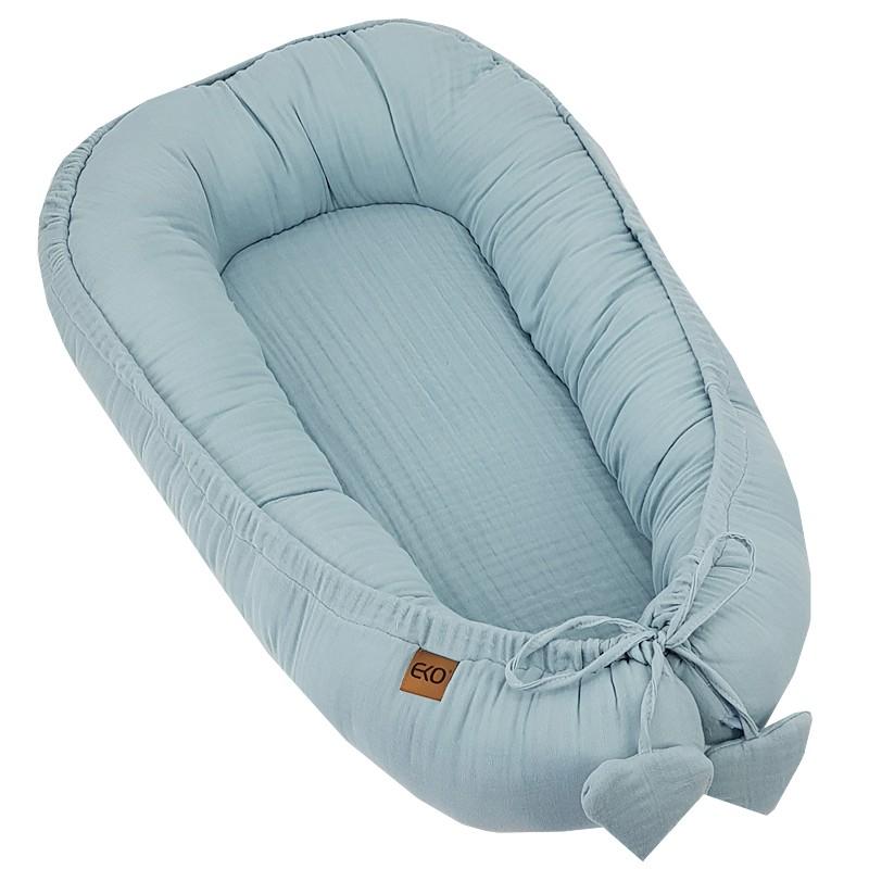 EKO Hniezdo pre bábätko mušelínové Blue 90x60 cm