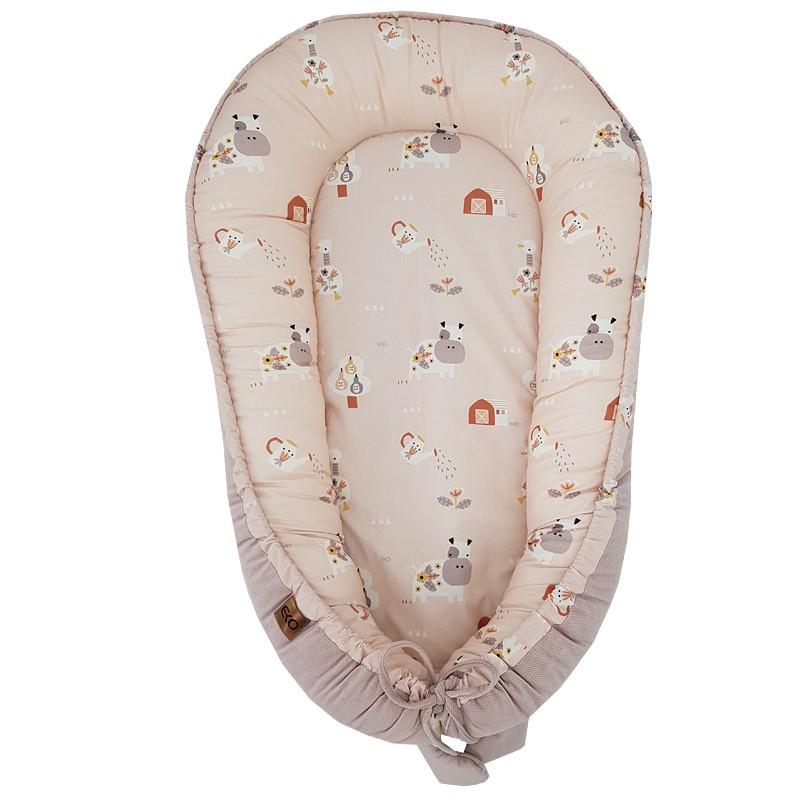 EKO Hniezdo pre bábätko VELVET My farm Powder pink 90x60 cm