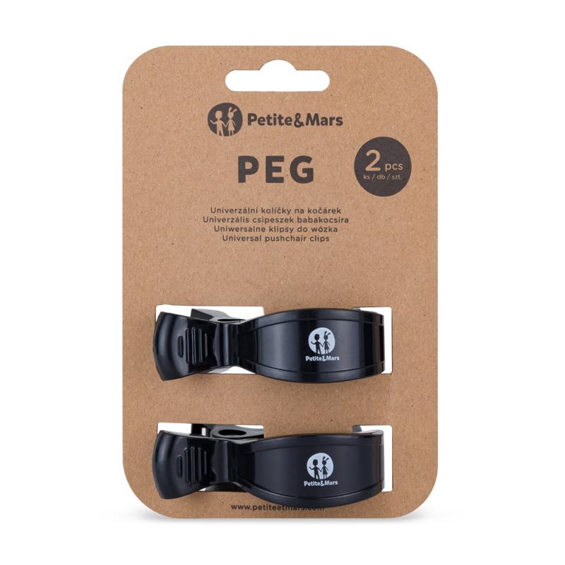 PETITE&MARS Štipec Peg na kočík (2 ks) Black