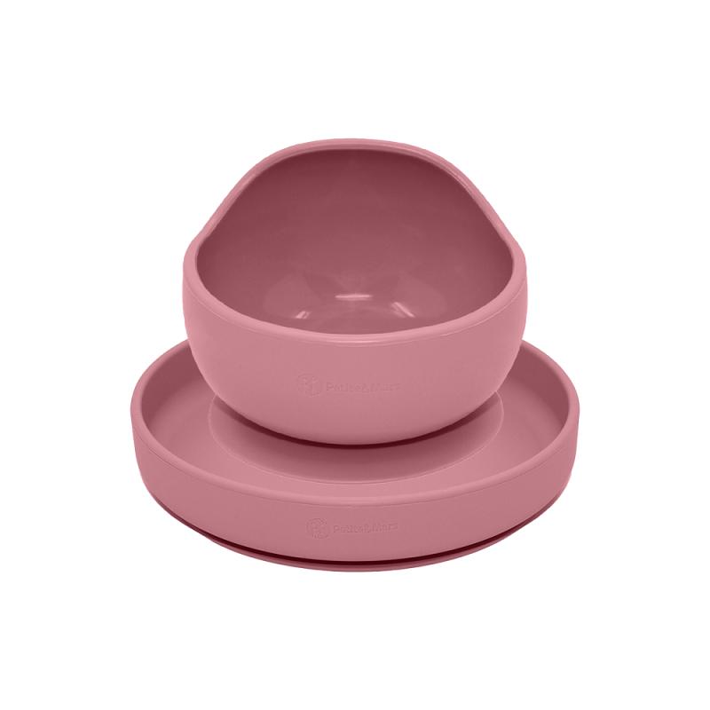 PETITE&MARS Set jedálenský silikónový TAKE&MATCH 2 ks tanier + miska Dusty Pink 6m+