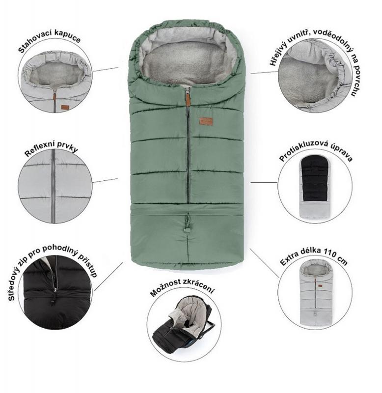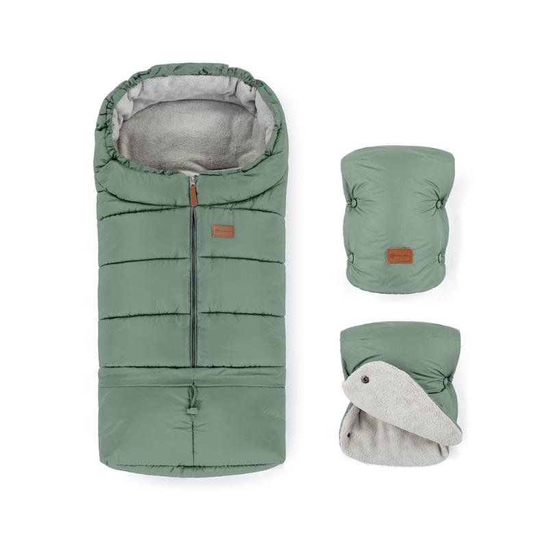 PETITE&MARS Set zimný fusak Jibot 3v1 + rukavice na kočík Jasie Pale Eucalypt