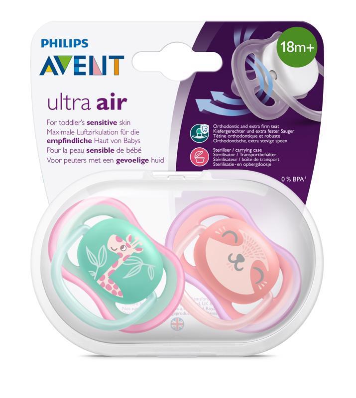 Cumlíky bábätka ukľudňujú. Keď zlyhajú všetky metódy na utíšenie dieťatka, môžu Vám pomôcť cumlíky AVENT, aby sa Vaše dieťatko utíšilo a kľudne odpočívalo. Bábätká s cumlíkom kľudnejšie spia, menej sa v spánku pohybujú a predovšetkým zostávajú ležať na chrbte, čo je doporučené aj pediatrom. Používanie cumlíka zmenšuje závislosť bábätka na fľašu, znižuje možnosť poškodenia zúbkov a môže znížiť aj riziko dentálnych problémov v neskoršom veku v porovnaní s dlhodobým cucaním palcov, ktoré vytvárajú nevhodný tlak na ďasná a predné zúbky. Všetky cumlíky AVENT sú silikónové. Silikón je bez chuti a zápachu, cumlíky majú dlhšiu životnosť a lepšie sa čistia ako kaučukové cumlíky. Vždy používajte cumlík, ktrorý svojou veľkosťou zodpovedá veku dieťatka. - 18+ mesiacov - silikónové - dajte dieťatku to najlepšie - bez BPA Vlastnosti: - Kotúč má extra veľké otvory, cez ktoré môže pokožka bábätka lepšie dýchať. - Sterilizátor / obal na prenášanie umožňujú sterilizovať cumlík vášho dieťaťa v mikrovlnnej rúre a nosiť ho so sebou. Nové cumlíky ultra air ponúkajú bábätkám ešte väčší komfort. Tieto cumlíky majú väčšie otvory, čím zaručujú lepšiu cirkuláciu vzduchu a predchádzajú tak hromadeniu slín za kotúčom. Cumlíky ultra air nielen utíšia bábätko, ale tiež sa starajú o jeho citlivú pokožku. Pozrite si video: Upozornenie: Sterilizátor / obal na prenášanie, voda a cumlíky môžu byť po 5 minútach chladnutia stále ešte veľmi horúce. Varovanie týkajúce sa sterilizačného obalu: Pred použitím vždy skontrolujte teplotu cumlíkov. Nesprávna výška hladiny vody, výkon mikrovlnnej rúry alebo dĺžka jej použitia môžu viesť k nižšej sterilizácii a môžu poškodiť sterilizátor / obal na prenášanie alebo cumlíky. Používajte iba cumlíky Philips Avent a obal uschovávajte mimo dosahu detí. Cumlík • Pre bezpečnosť vášho dieťaťa • VÝSTRAHA! Pred každým použitím dôkladne skontrolujte. Natiahnite cumlík do všetkých smerov. V prípade akýchkoľvek známok poškodenia alebo opotrebenia ho vyhoďte. Nevkladajte cumlík do vody a následne do mrazničky. Mohlo by dôjsť k oslabeniu cumlíka. Používajte iba držiaky cumlíkov, ktoré boli testované v súlade s normou EN 12586. K cumlíku nepripevňujte žiadne ďalšie pútka ani šnúrky, dieťa by sa nimi mohlo uškrtiť. Cumlík nepriväzujte dieťaťu okolo krku; hrozí nebezpečenstvo uškrtenia. Vždy sa uistite, že vaše dieťa používa správnu veľkosť cumlíka. Cumlíky Philips Avent sa vyrábajú v rôznych veľkostiach podľa vekového rozmedzia. Pred prvým použitím: Cumlík dajte na 5 minút do vriacej vody. Nechajte ho 5 minút vychladnúť, skôr ako ho dáte svojmu dieťaťu. Nechajte vodu zachytenú vnútri cumlíka vychladnúť a potom ju vytlačte von. Tým zaistite potrebnú hygienu. Čistenie a sterilizácia: Pred každým použitím cumlík umyje teplou vodou a jemným mydlom. Na čistenie cumlíka NEPOUŽIVAJTE abrazívne čističe ani agresívne chemikálie/prípravky. Nadmerná kombinácia čistiacich prípravkov môže spôsobiť popraskanie plastových častí. V takom prípade cumlík ihneď vymeňte. Cumlíky sú vhodné pre všetky bežne používané metódy sterilizácie. Skôr ako sa dotknete sterilizovaných cumlíkov, dôkladne očistite povrchy aj svoje ruky. Používanie: Používajte tento výrobok vždy pod dohľadom dospelej osoby. Z bezpečnostných a hygienických dôvodov cumlík po štyroch týždňoch používania vymeňte. NEPANIKÁRTE, ak nie je možné cumlík vybrať z úst. Nie je možného prehltnúť, je navrhnutý tak, aby bolo možné zvládnuť aj tieto situácie. Opatrne a čo najjemnejšieho vyberte z úst. Neponárajte cumlík do sladkých látok alebo liekov, u dieťaťa by mohlo dôjsť ku vzniku zubného kazu. Skladovanie: Cumlík uschovávajte v sterilizátore / obale na prenášanie alebo v suchej krytej nádobe. Nenechávajte cumlík na priamom slnku alebo blízko zdroja tepla, ani ho nenechávajte v sterilizačnom roztoku dlhšie, ako sa odporúča, pretože by mohlo dôjsť k jeho porušeniu. Adresa dodávateľa: Philips Consumer Lifestyle B.V., Tussendiepen 4, 9206 AD Drachten, The Netherlands, PH.CentralRegulatoryOfficer@philips.com
