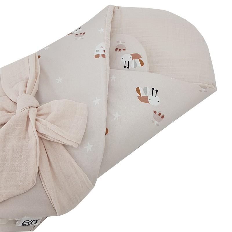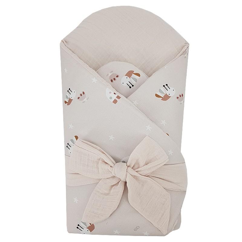 EKO Zavinovačka mušelínová s kokosovou vyberateľnou vložkou Bees Muselin Beige 75x75 cm