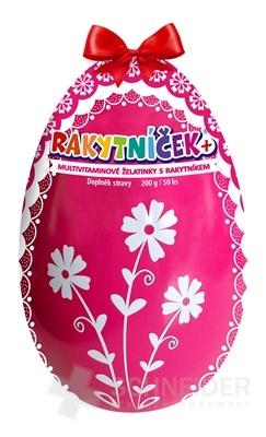Multivitamínové želatínky Rakytníček+ obsahujú rakytník a zmes ovocných koncentrátov a vitamíny.