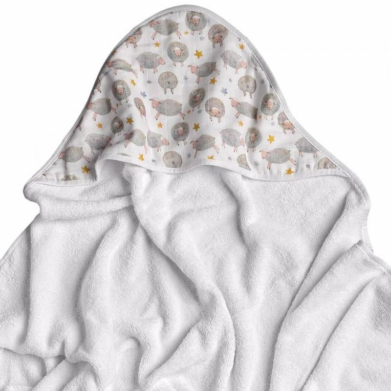 XKKO BMB Bambusová froté osuška s kapucňou, 90x90 - Dreamy Sheeps