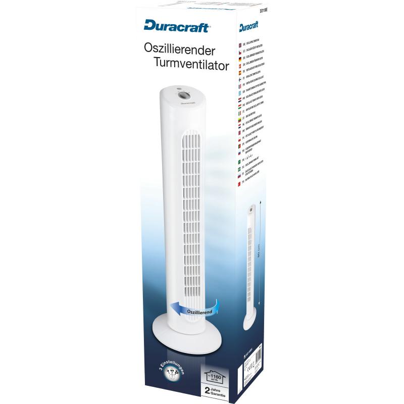 Ventilátor Duracraft pracuje s hlučnosťou 56 dB, takže nezasahuje do vašich každodenných aktivít. Ventilátor sa ľahko používa, gombík mení silu prúdenia vzduchu. Duracraft má 3 rýchlosti, vďaka ktorým prispôsobíte nastavenia zariadenia rôznym podmienkam a vašim potrebám. Vďaka štýlovému dizajnu sa zariadenie hodí do domácnosti alebo kancelárie. Vďaka kompaktnej veľkosti nezaberie veľa miesta. Zmestí sa aj na malú plochu. Jeho stabilná základňa eliminuje možnosť prevrátenia.