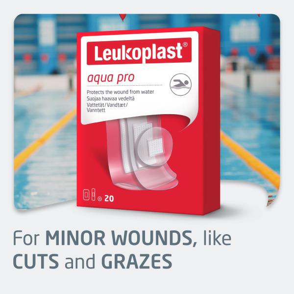 Balenie obsahuje 20 kusov vodeodolných náplastí Leukoplast® aqua pro v troch rôznych veľkostiach (6x okrúhle 22 mm, 8x 19 x 72 mm, 6x 38 x 63 mm). Náplasti poskytujú spoľahlivú ochranu pred vlhkosťou, baktériami a nečistotami, sú priedušné a pohodlné na nosenie. Sú ideálne pre aktívnych ľudí, ktorí potrebujú spoľahlivú ochranu rán aj pri športe či iných fyzických aktivitách.