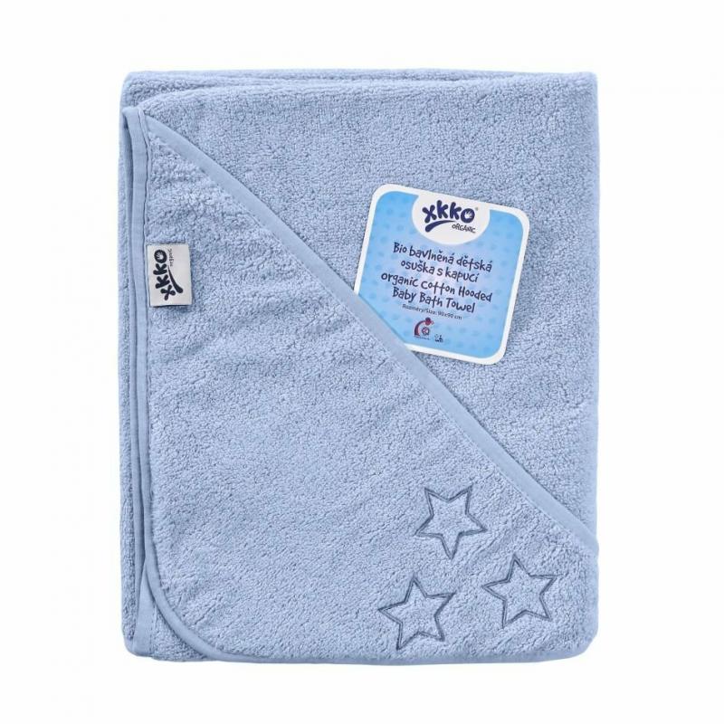 XKKO Organic BIO Bavlnená froté osuška s kapucňou 90x90 - Baby Blue Stars