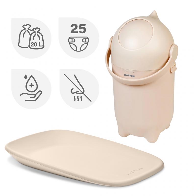 NATTOU Kôš na plienky Dropy a prebaľovacia podložka Softy Beige 50x70 cm