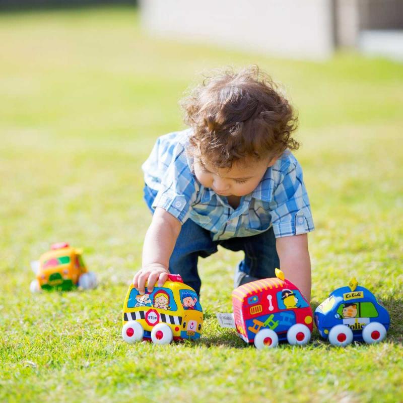 - zmysly - autíčka majú výrazné, oku lahodiace farby, tieto kontrastné farby priťahujú pozornosť bábätka, rozvíjajú jeho zrak; Pri hre s bábätkom môžete stimulovať jeho dotyk jemným vozením autíčka po jeho telíčku