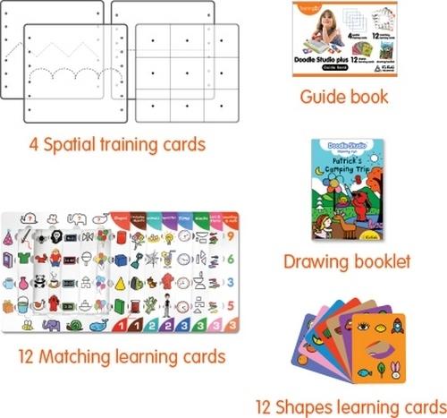 Kresliace štúdio pomáha deťom precvičiť písanie v konkrétnom priestore a zlepšiť kontrolu nad pohybom rúk. Špeciálne cvičné kartičky sú navrhnuté na podporu pochopenia polohy, smeru a vzdialenosti čiar.