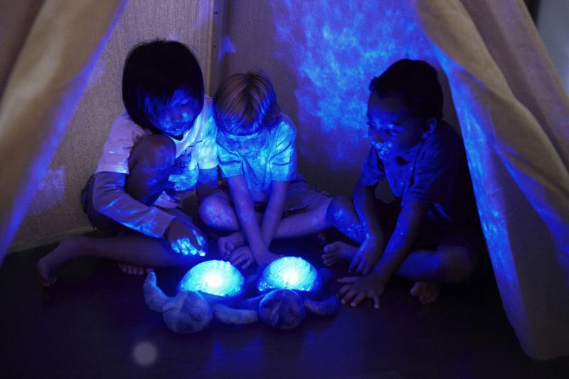 Stačí stlačiť tlačidlo na pancieri korytnačky, aby ste zapli svetelný projektor a užili si jeho žiaru celých 23 minút.