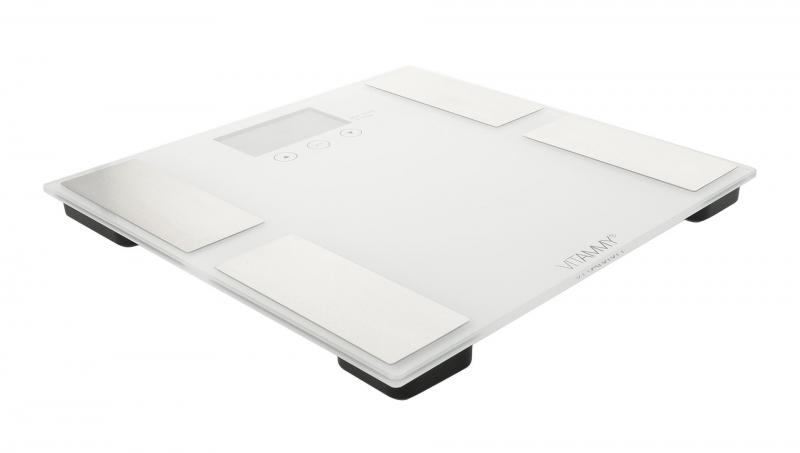 Snehobiela, presná, elektronická, analytická kúpeľňová váha VITAMMY - tuk, voda, svaly, kosti, BMI, kalórie.