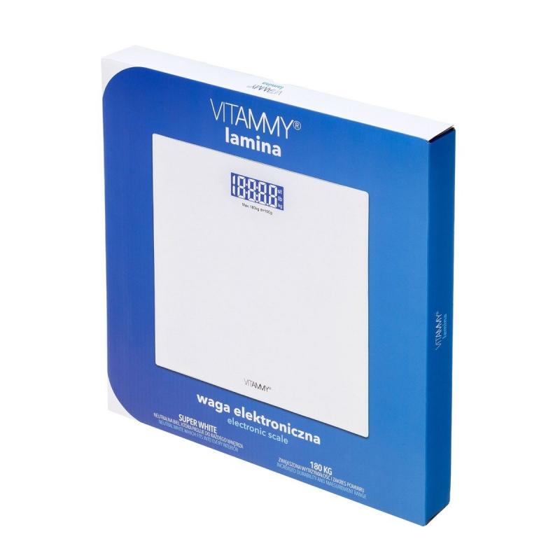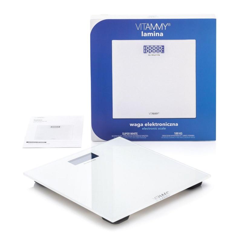 VITAMMY Lamina je precízna, dokonale vyrobená elektronická kúpeľňová váha s nadčasovým vzhľadom. Snehobiela sklenená plocha s veľkým displejom dokonale zapadne do interiéru každej kúpeľne, čím ju zatraktívni a okrášli.