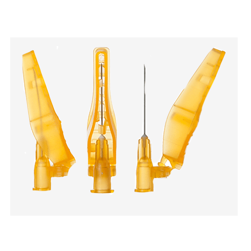 Po aktivácii bezpečne uzamkne ihlu v ochrannom ramene, čím efektívne zabraňuje náhodnému poraneniu.