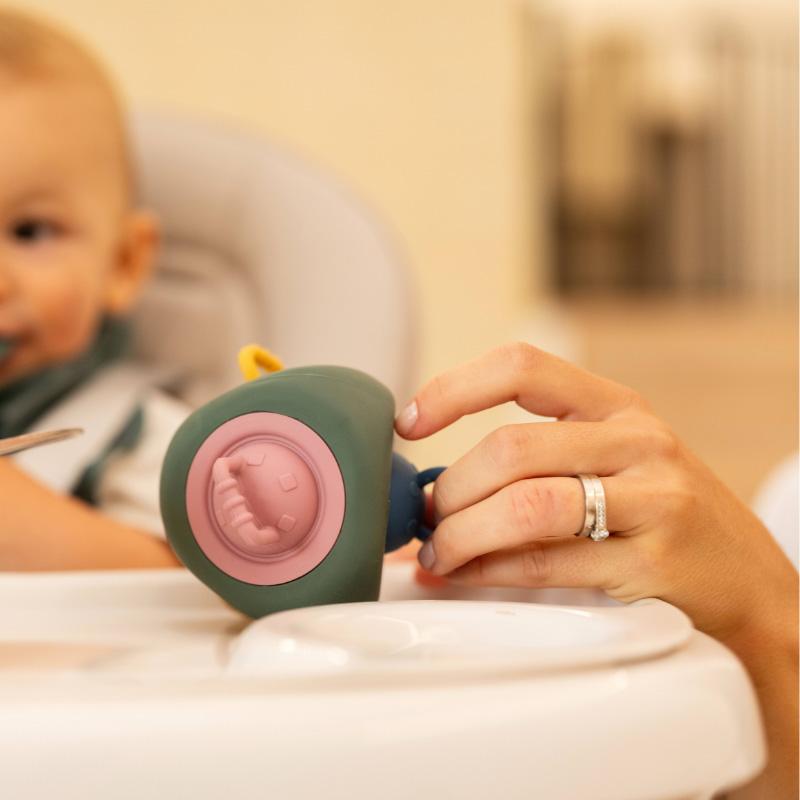 PETITE&MARS Hračka silikónová Pop Up Triangle Misty Green 10m+