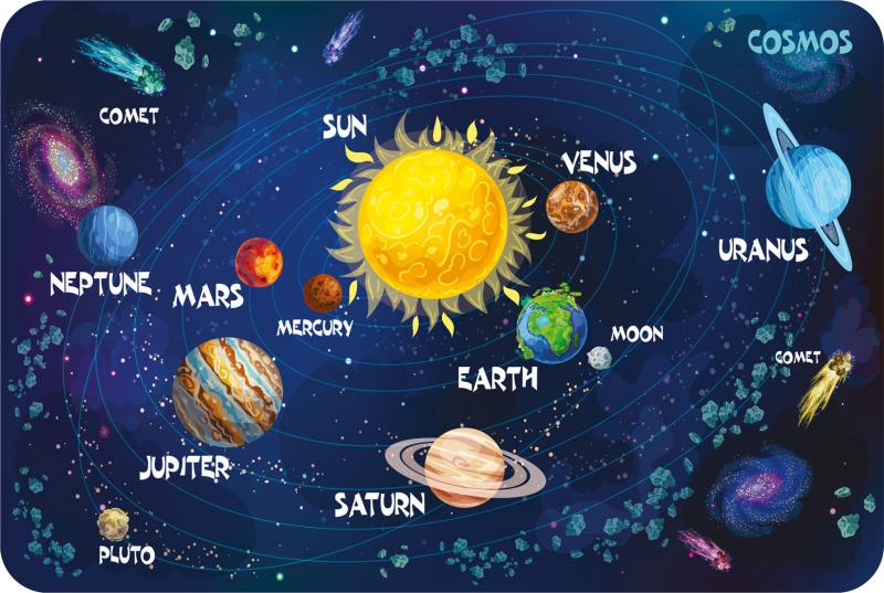 Inšpiratívny motív Vesmíru: Rozvíja fantáziu, podporuje kreatívnu hru a sny o vesmíre. Navyše slúži ako nástroj na poznávanie planét a vesmírnych javov.