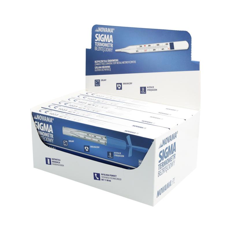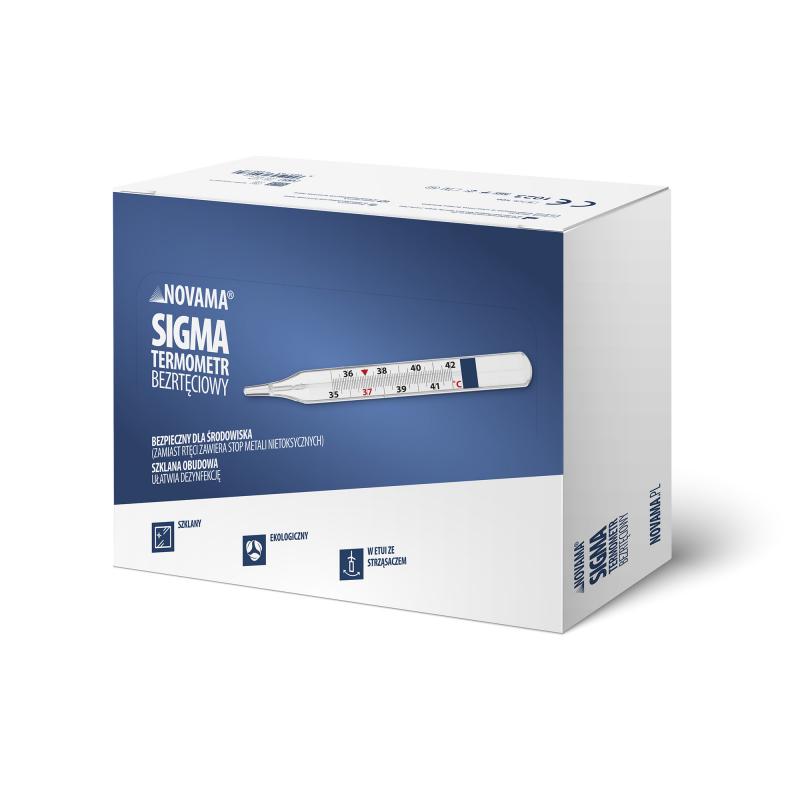 NOVAMA SIGMA je moderný bezortuťový teplomer, ktorý spája klasický, spoľahlivý sklenený teplomer s prístupom šetrným k životnému prostrediu. Namiesto toxickej ortuti obsahuje ekologickú zmes tekutých kovov – gália, india a cínu – vďaka čomu je úplne bezpečný pre vaše zdravie a planétu.