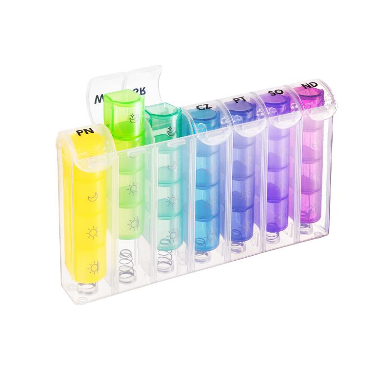 Dni v týždni sú navyše farebne odlíšené, čo ešte viac zjednodušuje orientáciu a pomáha predchádzať zámenám. Tento esteticky príjemný a farebný organizér vám uľahčí plánovanie liečby a vnesie do vašej každodennej rutiny poriadok.