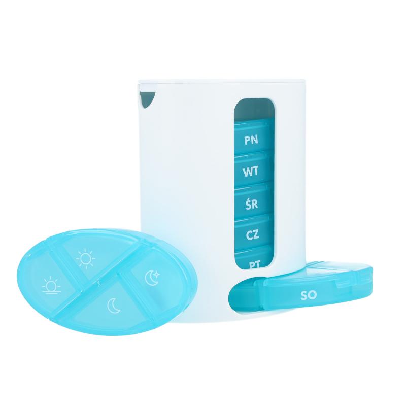 Súprava obsahuje sedem vysúvacích škatuliek, jednu pre každý deň v týždni. Každá škatuľka je rozdelená na štyri priehradky, ktoré zodpovedajú ranným, poludňajším, večerným a nočným dávkam. Vďaka tomu je presné plánovanie príjmu liekov mimoriadne jednoduché a prehľadné.
