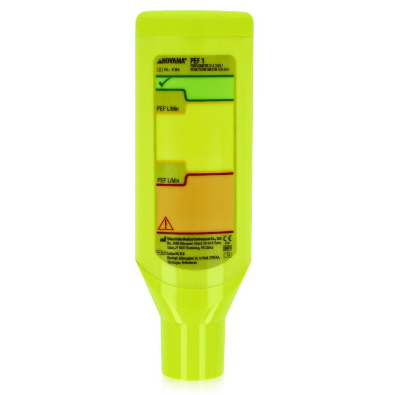 NOVAMA PEF 1 je farebný, limetkovo sfarbený spirometer navrhnutý špeciálne pre deti a tínedžerov, ktorý výrazne uľahčuje každodennú liečbu astmy a iných ochorení dýchacích ciest. Vďaka rozsahu merania od 50 do 400 l/min umožňuje presné monitorovanie maximálneho výdychového prietoku (PEF) a možnosť nastavenia prietoku zaisťuje individuálne prispôsobenie potrebám mladých pacientov.