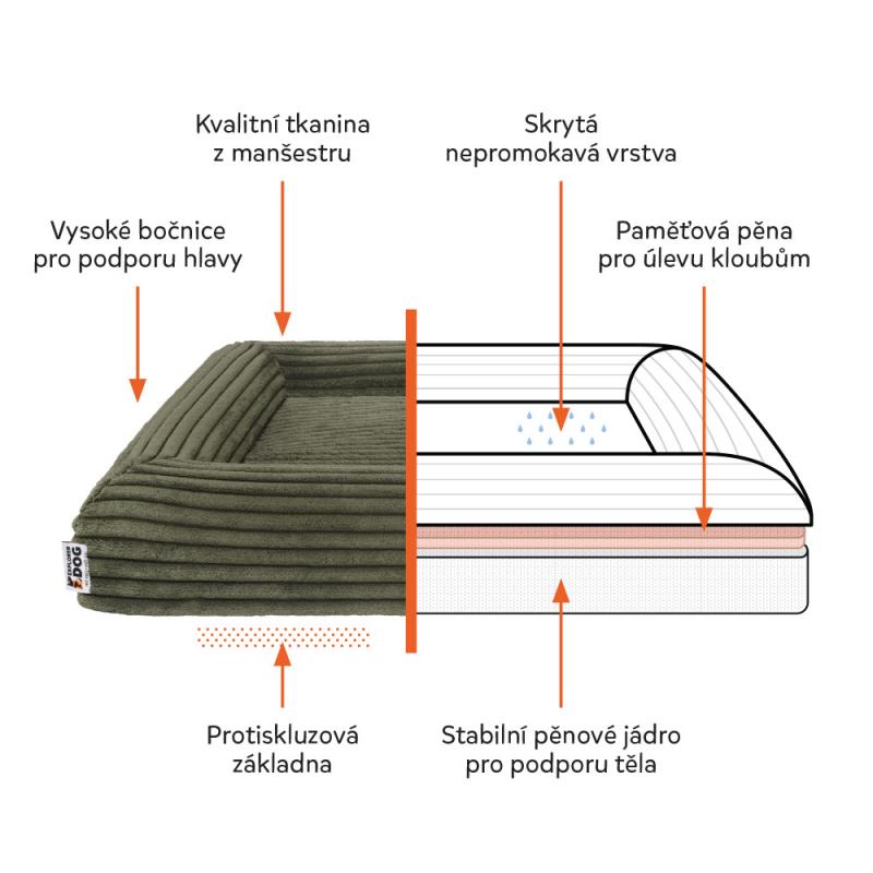 EXPLORER DOG Pelech ortopedický Cloud L 115x90 Moss Green