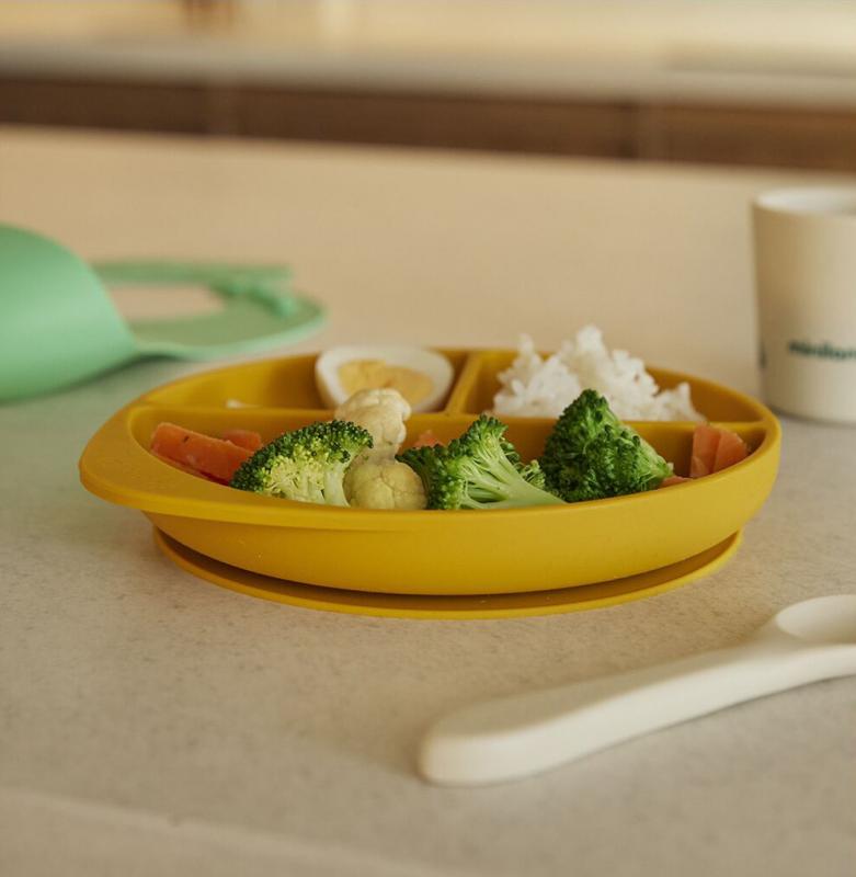 Tanier s vyvýšenými okrajmi: Okraje taniera zabraňujú rozlievaniu jedla a uľahčujú dieťaťu jeho naberanie.