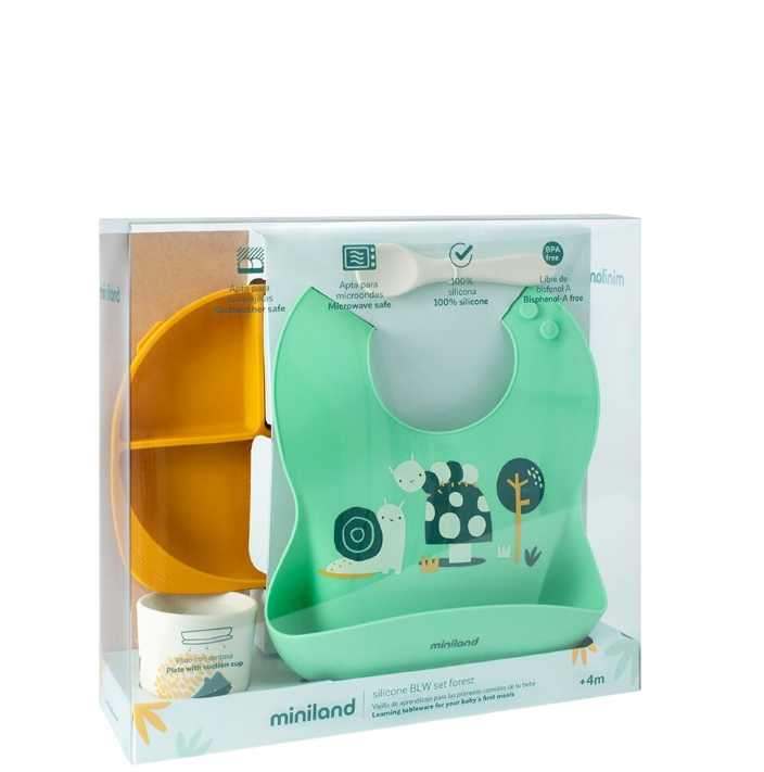 Miniland Set na jedenie podľa BLW - Záhrada je kompletné a praktické riešenie, ktoré podporuje samostatné stravovanie dieťaťa. Vďaka funkčným prvkom, ako sú vyvýšené okraje taniera a ergonomická lyžica, uľahčuje proces učenia a znižuje neporiadok. Tento BPA free set je nielen bezpečný, ale aj mimoriadne praktický na údržbu vďaka možnosti umývania v umývačke a použitia v mikrovlnke, čo z neho robí ideálneho spoločníka pre každú rodinu.