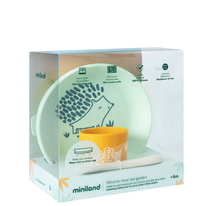 Miniland Set na jedenie Jež je navrhnutý pre malé deti, ktoré sa učia samostatne jesť. Táto súprava, vyrobená z kvalitných a odolných materiálov v Španielsku, poskytuje komfort a bezpečnosť pri každom jedle. Roztomilý motív ježka na tanieriku a hrnčeku robí z učenia sa jesť zábavu.