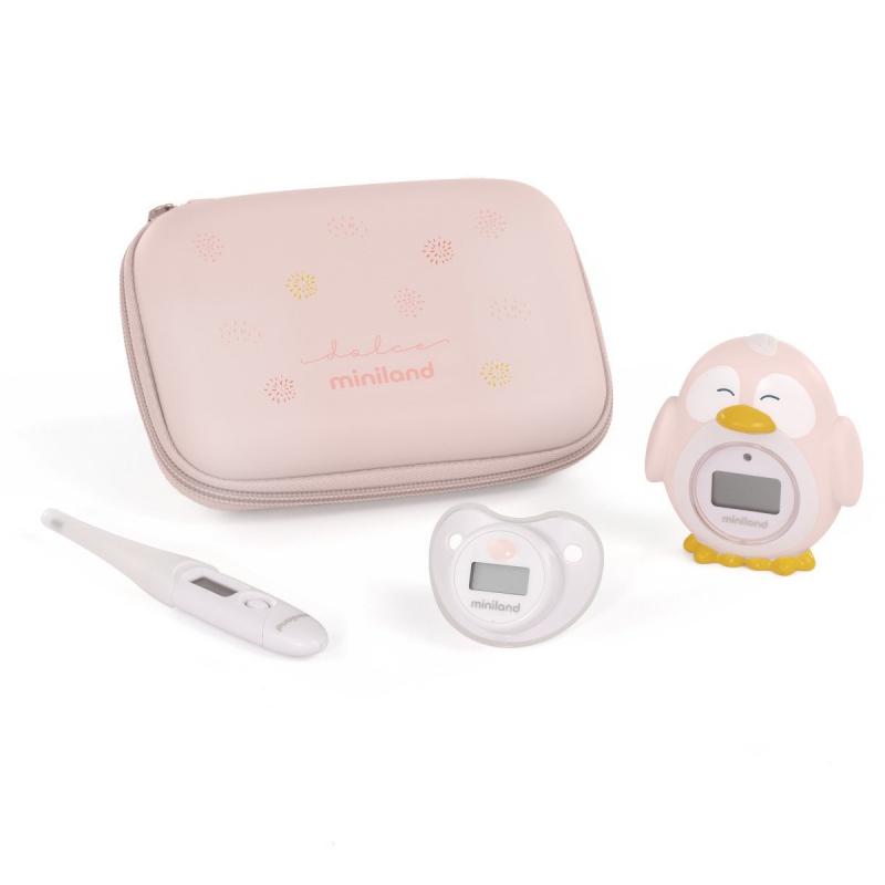 Miniland Dolce Sada 3 teplomerov, teplomer s flexi špičkou, do kúpeľa, cumlík, ružová
