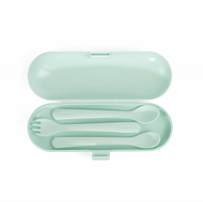 Súprava obsahuje aj praktické ochranné puzdro, ktoré umožňuje hygienicky a bezpečne prenášať príbory. Vďaka puzdru si môžete súpravu vziať kamkoľvek, či už na prechádzku, na cesty alebo k starým rodičom. Celú súpravu, vrátane puzdra, je možné umývať v umývačke riadu, čo rodičom uľahčuje každodennú údržbu.