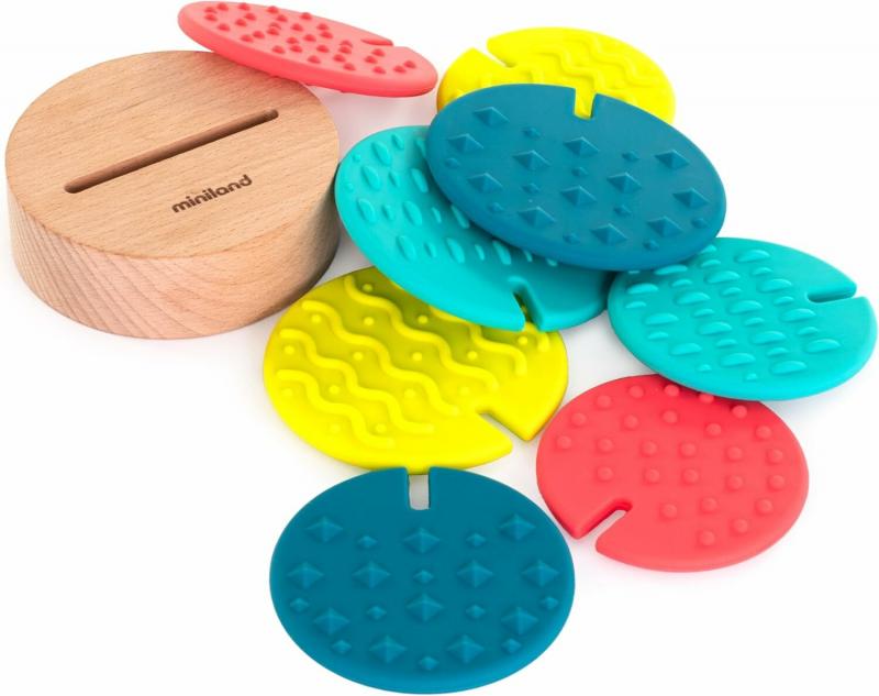 Táto jedinečná hračka sa skladá z drevenej základne a 8 flexibilných silikónových prvkov s rôznymi textúrami a farbami, ktoré sa dajú skladať na seba v rôznych kombináciách.
