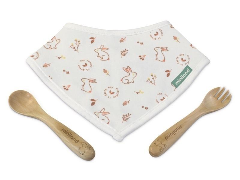 Miniland ECO-friendly Sada ekologických príborov s podbradníkom, Zajac