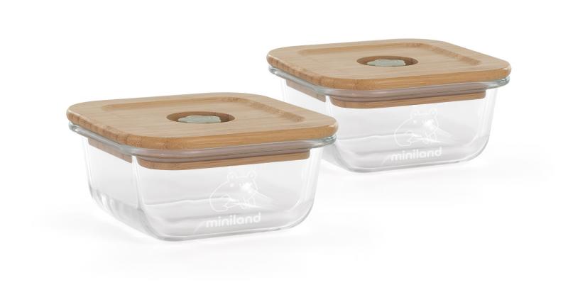 Miniland ECO-friendly Sklenené štvorcové nádoby 2x210 ml s izotermickou taškou, Žabka