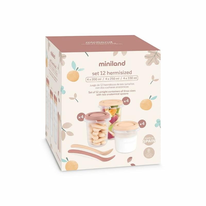 Miniland Valencia Hermeticky uzatvárateľné nádoby na potraviny s lyžičkami, 12x250 ml