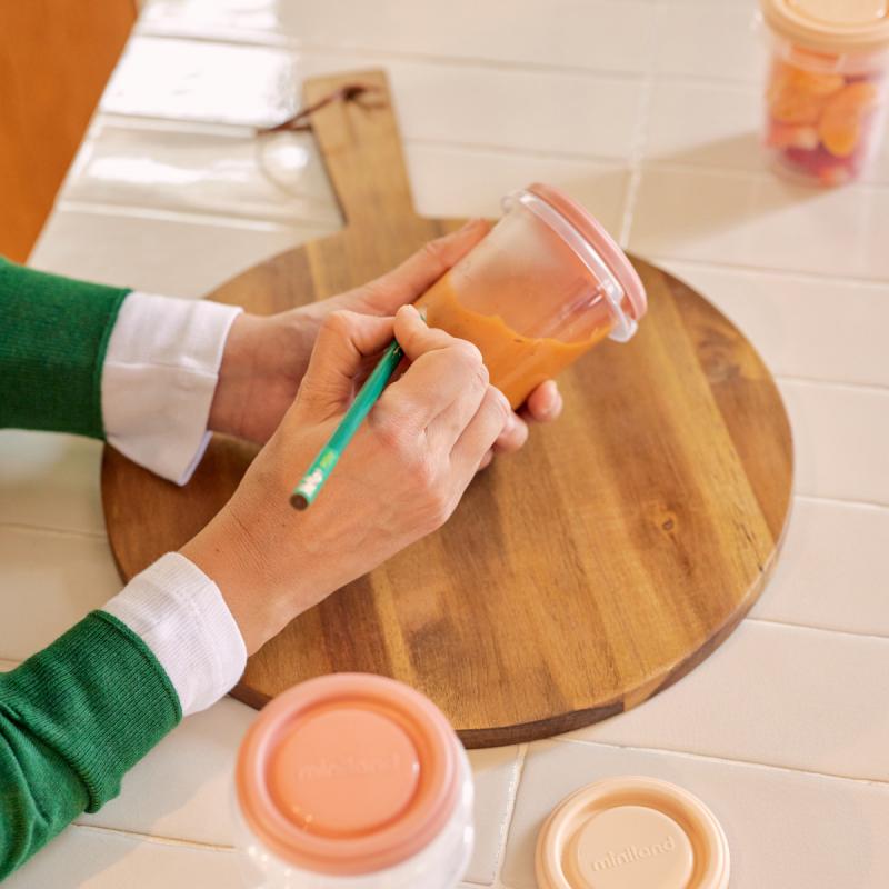 Možnosť zapisovania údajov: Bočná plocha nádoby umožňuje zapísať dôležité údaje ako dátum, meno dieťaťa a druh potravín, čo zjednodušuje organizáciu uskladneného jedla.