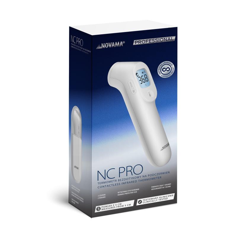 NOVAMA NC PRO je profesionálny, bezdotykový teplomer, ktorý v sebe spája špičkovú technológiu a maximálny komfort. Vďaka unikátnemu detektoru vzdialenosti a klinickej validácii (ISO normy) poskytuje garantovanú presnosť merania za 1 sekundu. Multifunkčnosť, tichý režim pre nočné meranie a doživotná záruka Door-to-Door robia z NC PRO ideálnu, bezpečnú a spoľahlivú investíciu do zdravia celej rodiny.