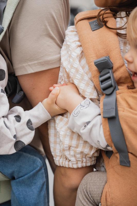 Šírka sedadla: Plne nastaviteľná od 20 do 53 cm, čo zaručuje správnu oporu kolienok („od kolienka ku kolienku“) pre malé deti aj veľké batoľatá. Súčasťou balenia sú aj predĺženia sedadla pre dlhodobé nosenie veľkých detí.