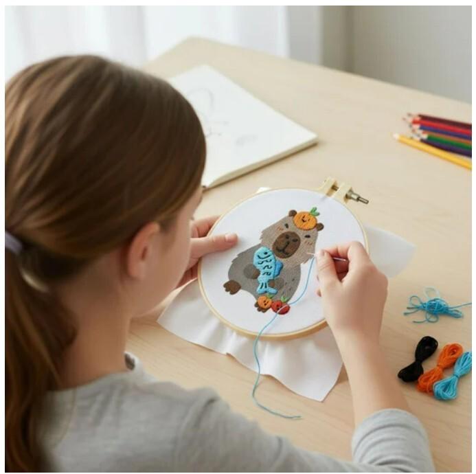 WOW BOX Kreatívna sada Vyšívanie - Kapibara obeduje