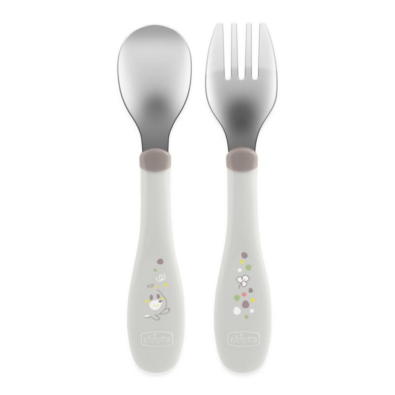 CHICCO Príbor detský z nerezovej oceli grey 18m+