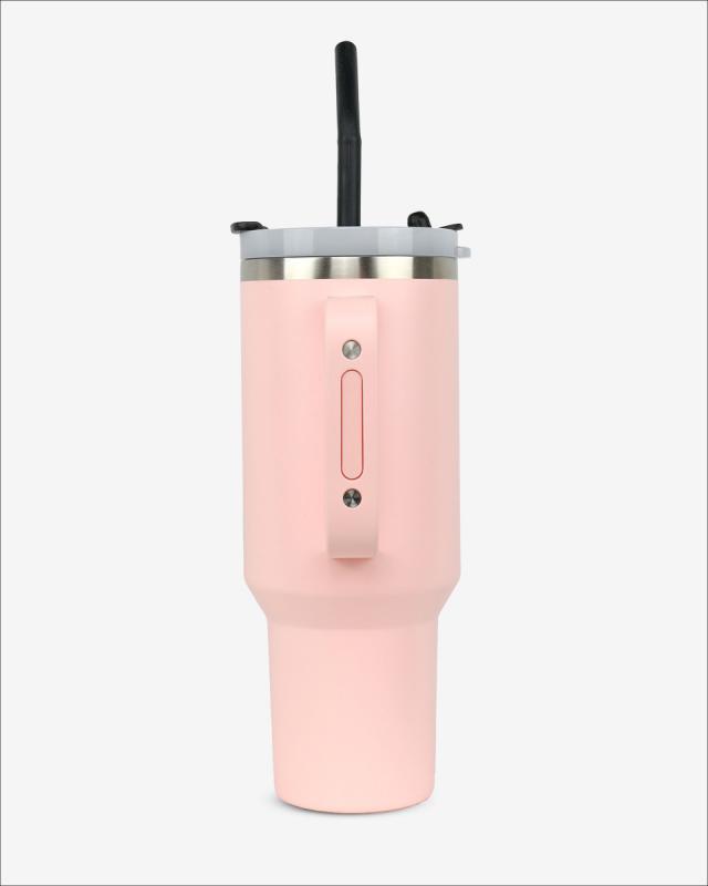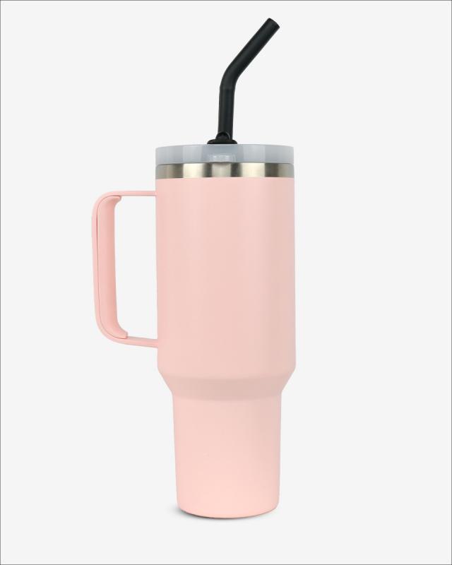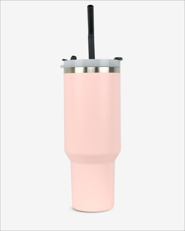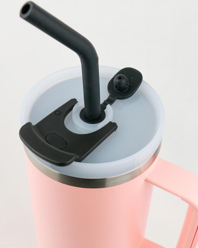 Runbott Latt Termohrnček s rúčkou a slamkou – 1000 ml, Pudrová ružová