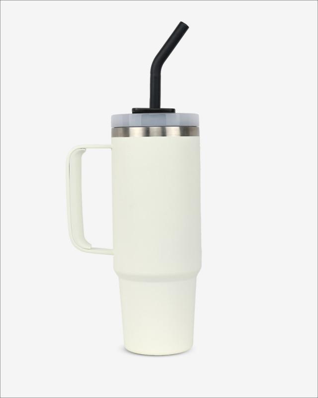 Runbott Latt Termohrnček s rúčkou a slamkou – 800 ml, Krémový