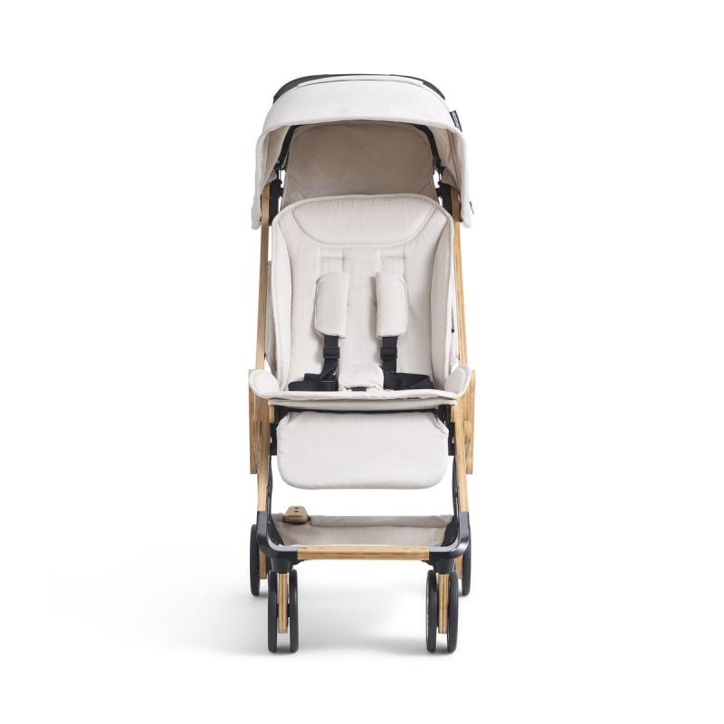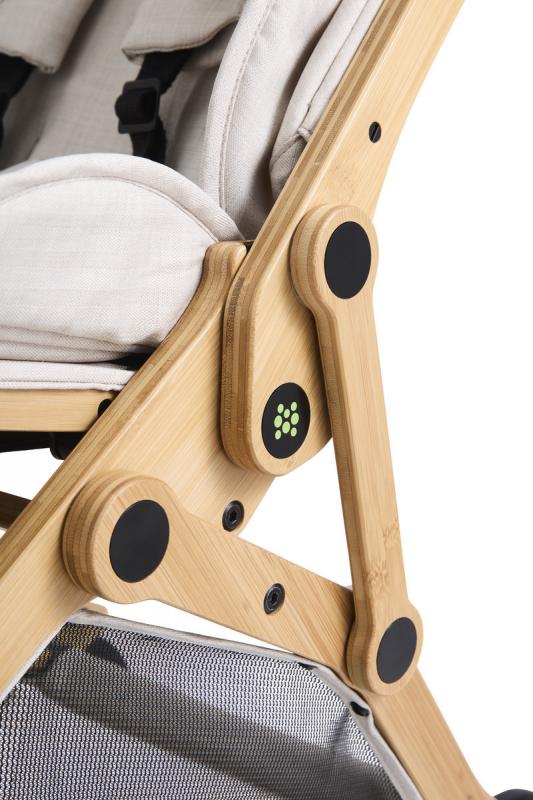 Srdcom kočíka je bambus a hliník. V konštrukcii nenájdete žiadne nadbytočné plastové prvky – všetko je spojené skrutkami a maticami, čo zaručuje dlhú životnosť a jednoduchú opraviteľnosť. Tkaniny sedadla pochádzajú z recyklovaných materiálov, čím uzatvárajú kruh ekologickej zodpovednosti.