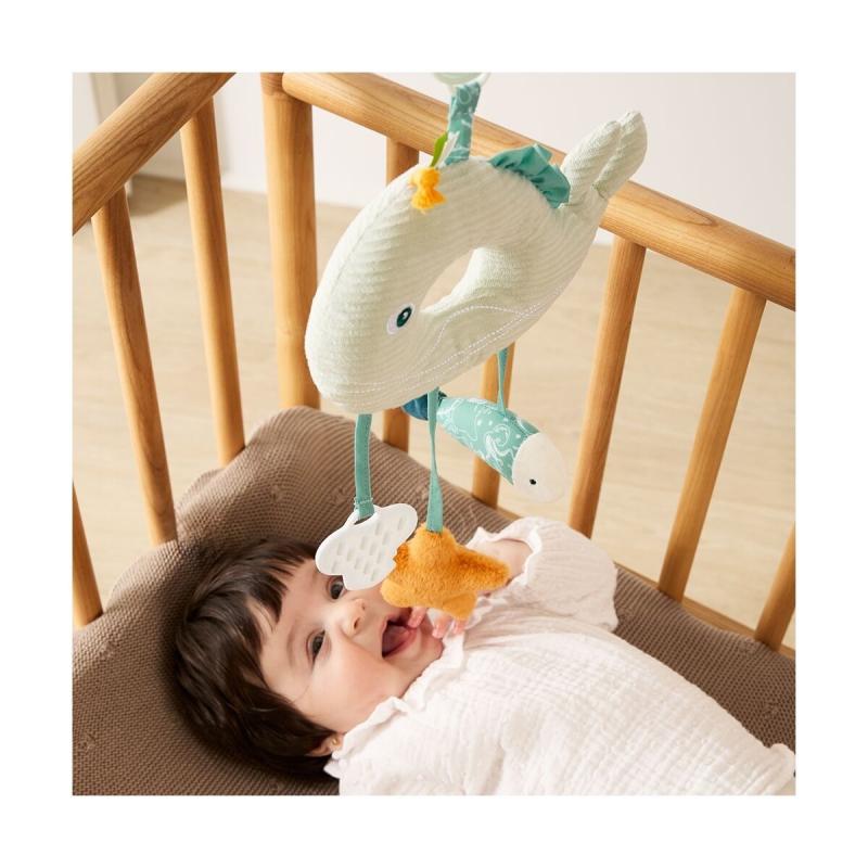 Závesná veľryba Miniland Baby Sea je vyrobená tak, aby sa stala prirodzenou súčasťou každodenného života vášho bábätka. Či už ste na prechádzke v meste alebo bábätko odpočíva v postieľke, táto hračka poskytuje presne tú správnu mieru stimulácie a pohodlia. Mäkké formy a jemné námorné farby vytvárajú harmonické prostredie pre zdravý senzorický rozvoj.
