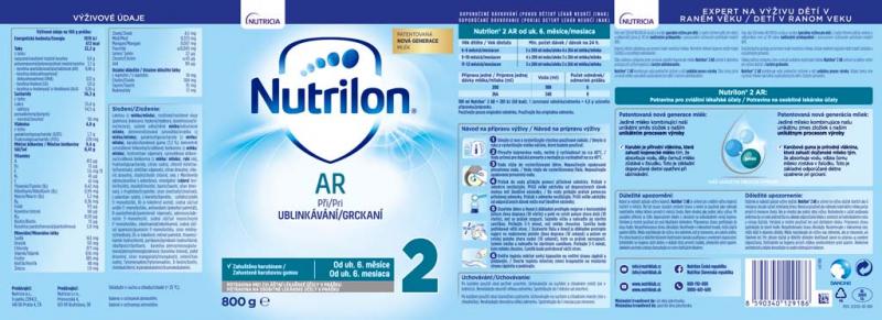Nutrilon 2 AR je dietetická potravina na osobitné medicínske účely vhodná pre diétny režim pre výživu dojčiat od ukončeného 6. mesiaca, ak nemôžu byť dojčené, a ktoré grckajú po bežnej dojčenskej strave alebo pri odgrgnutí.